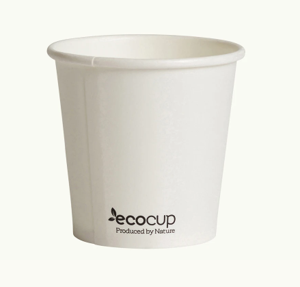 4oz single wall white coffee cups/hot cups. Biodegradable and commercially compostable. 60mm lids.