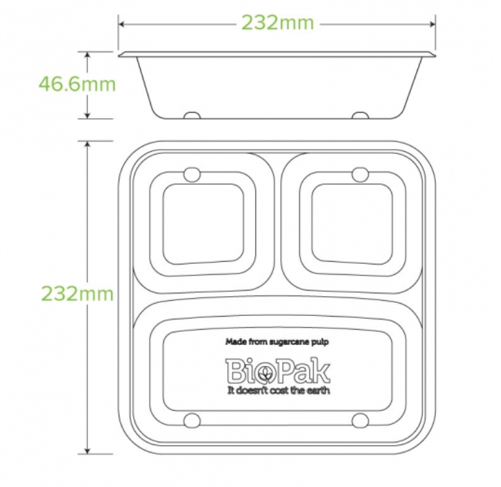 3-Compartment Natural Large BioCane Takeaway Base - BioPak