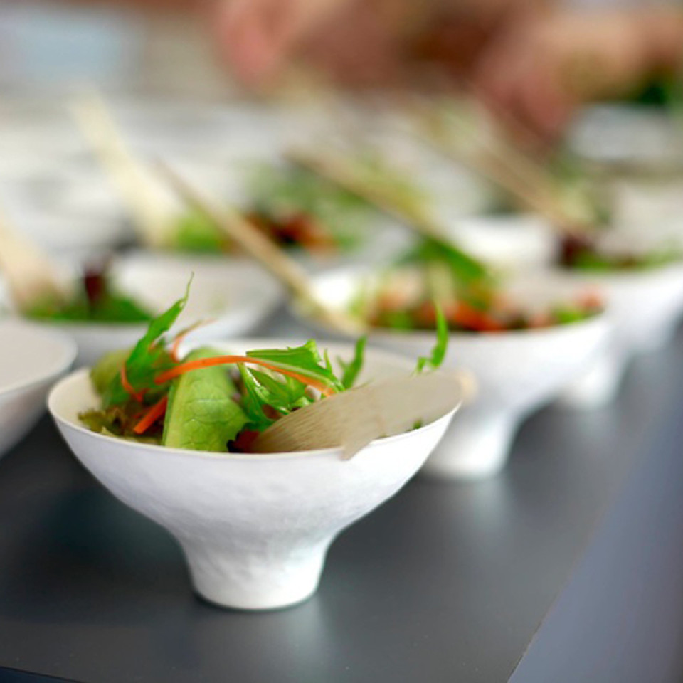These stylish compote bowls are perfect for elegant parties or weddings and for standing or seated events. They can be used to serve sweet, savoury, hot or cold dishes. Light to hold, you can serve hot or cold food in this WASARA compote - it will not soften for at least six hours - long after the food has been eaten. Then you can dispose of the used dishes in the compost or landfill, knowing that within a few hours they will have started breaking down without releasing any harmful gases or toxins.