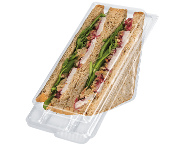 Castaway' Bettaseal' Sandwich Wedges are an excellent choice for ready-made sandwiches. Designed with a double split hinge to prevent the wedge from opening it is easy to fill and close. The flat front surface also provides excellent clarity and easy labelling.