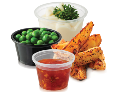 Castaway' Portion Control Cups and Lids provide the perfect portion control for both dining and takeaway applications. Made from durable, crack-resistant polypropylene, these containers can be used for hot or cold foods.