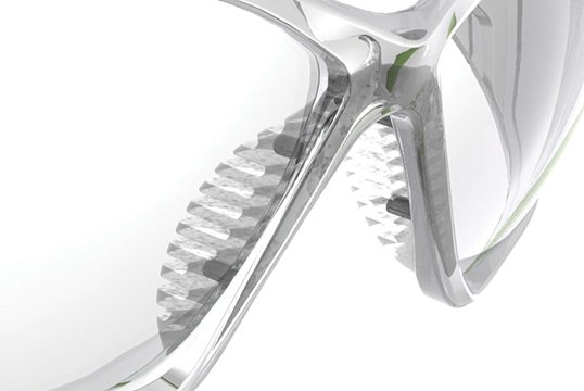 - Rubber nose pad and co-injected temple pads for superior comfort and a non-slip fit