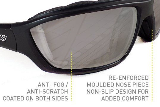 - Anti-fog / Anti-scratch coated on both sides