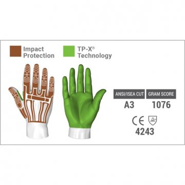 - Durable TP-X' palm with reinforced stitching pattern provides the ultimate dexterity and grip in wet/dry applications