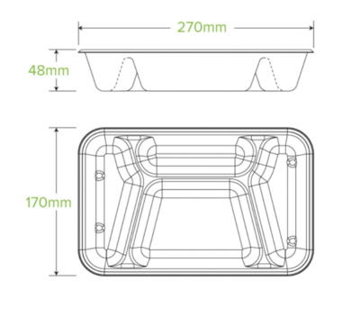 Our plastic-free 4 compartment natural base is made from rapidly renewable sugarcane pulp, a by-product of the sugar refining industry. They are microwave and oven safe.