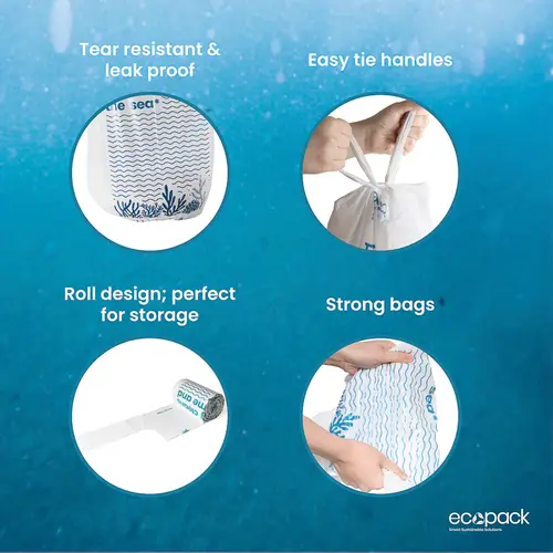 These new bin liners are made from 60% recycled ocean-bound plastic waste. They're the perfect fit for small stand-alone or pull-out bins and feature handles to make them easy to tie off and carry away. Do your part to ebb the flow of plastic waste by using a bin liner made from plastic waste that has been collected from coastal communities, shorelines and riverbanks before it washes out to sea.