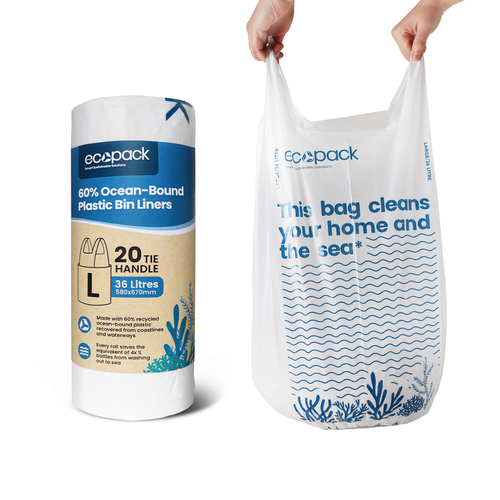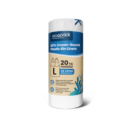 36L Large Ocean-Bound Recycled Plastic Bin Liners (White) Carton (400 Bags) – Ecopack