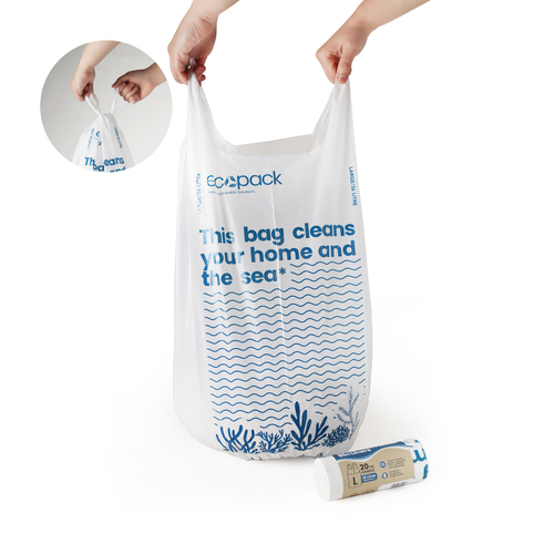 36L Large Ocean-Bound Recycled Plastic Bin Liners (White) Roll (20 Bags) - Ecopack