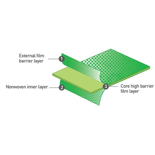 Ultrasonically welded and taped seams offer a robust defense against liquid and particulate hazards.