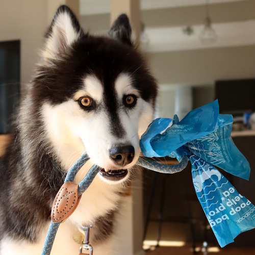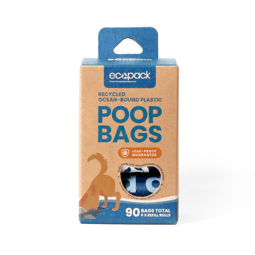 These Ecopack poop bags are made with recycled ocean-bound plastic that has been recovered from coastlines and waterways.