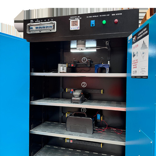 This 170L 2 Door Lithium Ion Battery Smart Charging Cabinet delivers safe, efficient Li-Ion battery charging with smart technology and advanced fire protection.