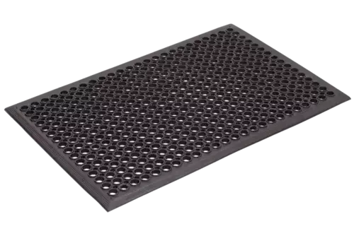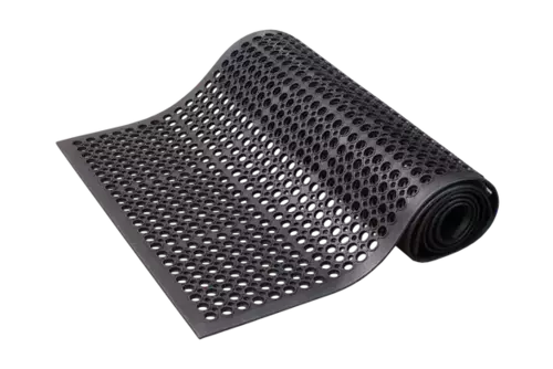 Safety Cushion is a natural rubber anti-fatigue safety mat which accommodates spills and debris ideal for wet areas, factories, workbenches etc.