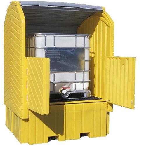Upper roll-top door and lower swing-out doors combine to allow easy and convenient access to IBC.