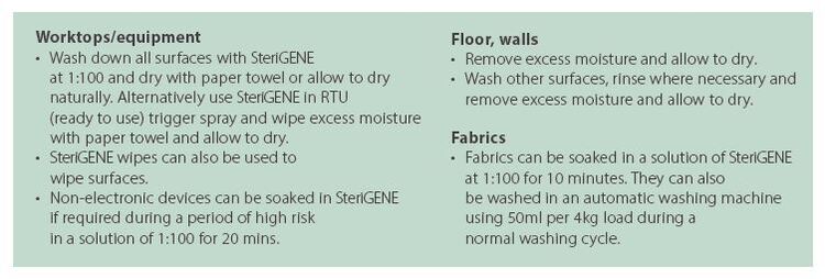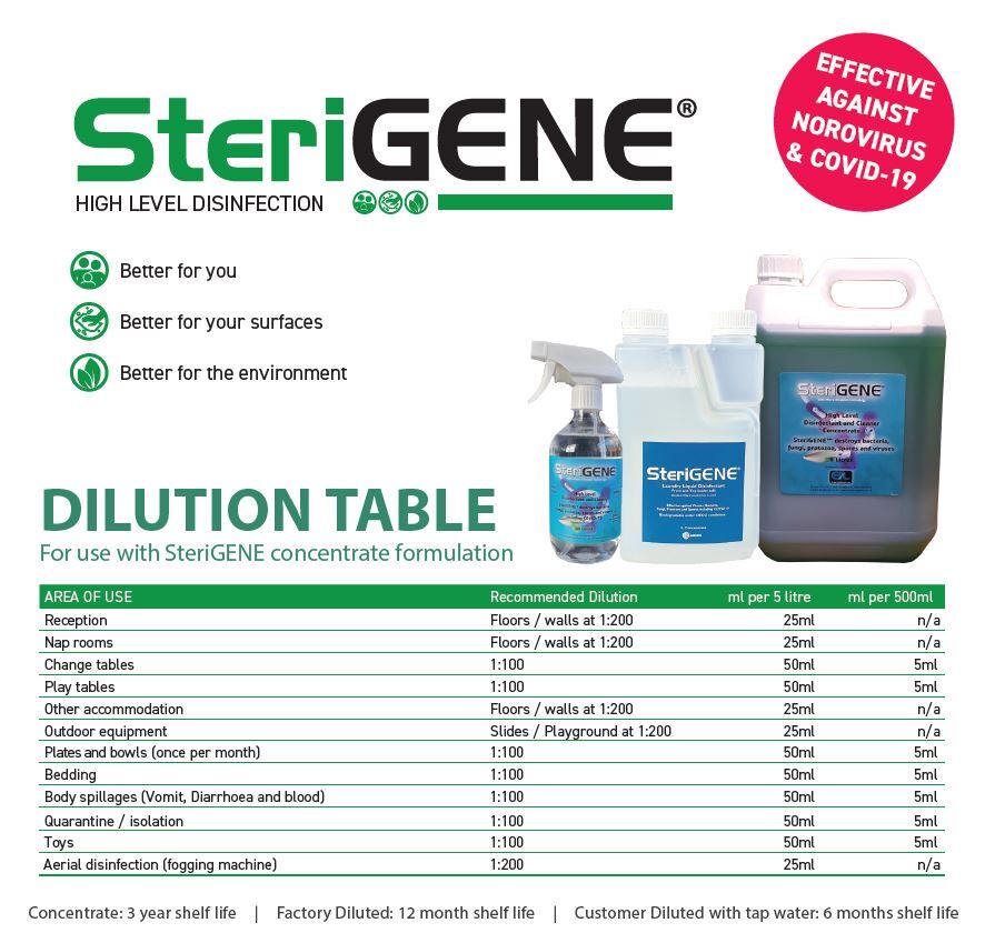 SteriGENE High Level Disinfectant (Trigene Advanced) has broad spectrum activity in high risk conditions against viruses, mycobacteria, fungi and bacterial organisms. Use as a disinfectant spray or add to your mop bucket solution
